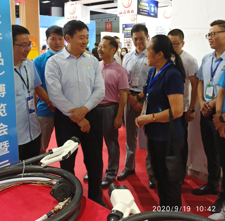 我公司張總為省領導介紹大功率充電樁用液冷線纜